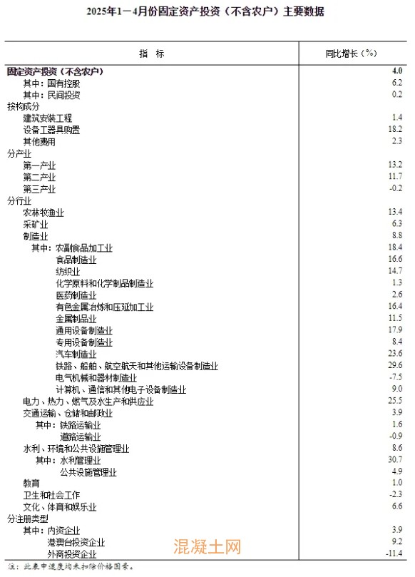 5月19日,国家统计局发布数据显示,2025年1-4月份,全国固定资产投资(不含农户)147024亿元,同比增长4.0%。其中,民间固定资产投资同比增长0.2%。从环比看,4月份固定资产投资(不含农户)增长0.1%。